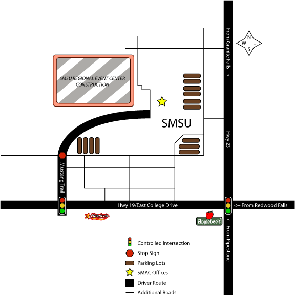 SMAC is located on the campus of Southwest Minnesota State University. Specifically the second floor of the Science and Technology building room 203 inside the Center for Innovation & Entrepreneurship (need a map to find where to enter campus, click here, need a map to find our office, click here).