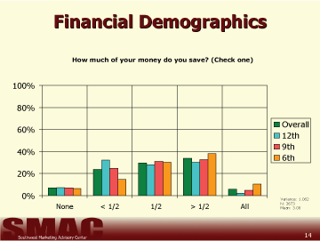 - 6th graders are more likely to save a larger amount of their money than 12th graders