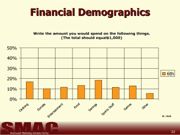- A moderator's guide was drafted by SMAC to lead focus group discussions held in three area school districts with multiple grade levels. The goal of these focus groups was to determine roughly the scope of 6th, 9th, and 12th grade students' understandings of business and personal finance principles.