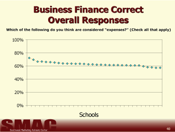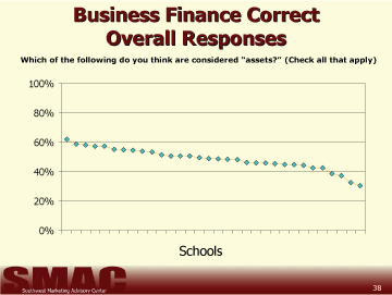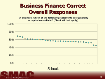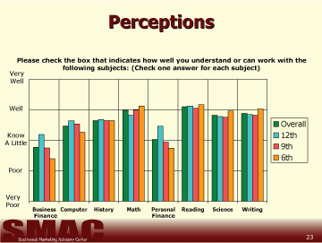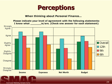 - Students perceptions of their abilities in the areas of business and personal finance are significantly higher than their actual scores in these areas