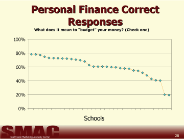 The scores given in this report should only be used to compare schools and should not be used as a comparison tool from other financial literacy studies. Its intent was not for use as a benchmark against other financial studies.