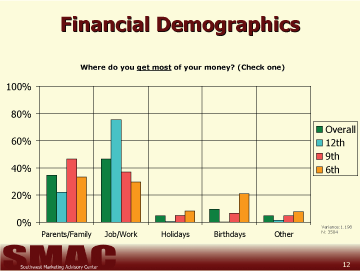 - The majority of 6th and 9th graders receive most of their money from their parents or family members, the majority of 12th graders work for most of their money